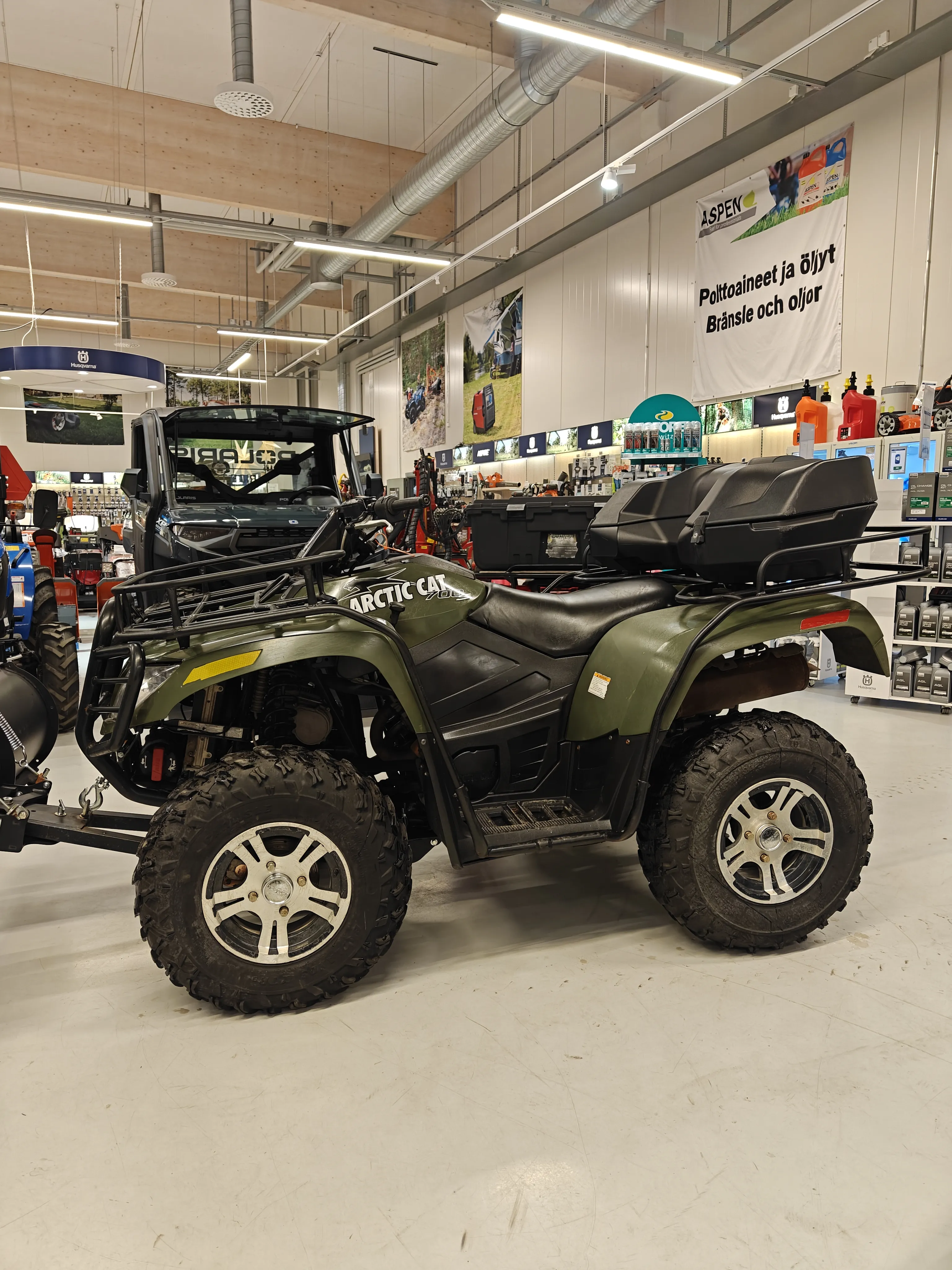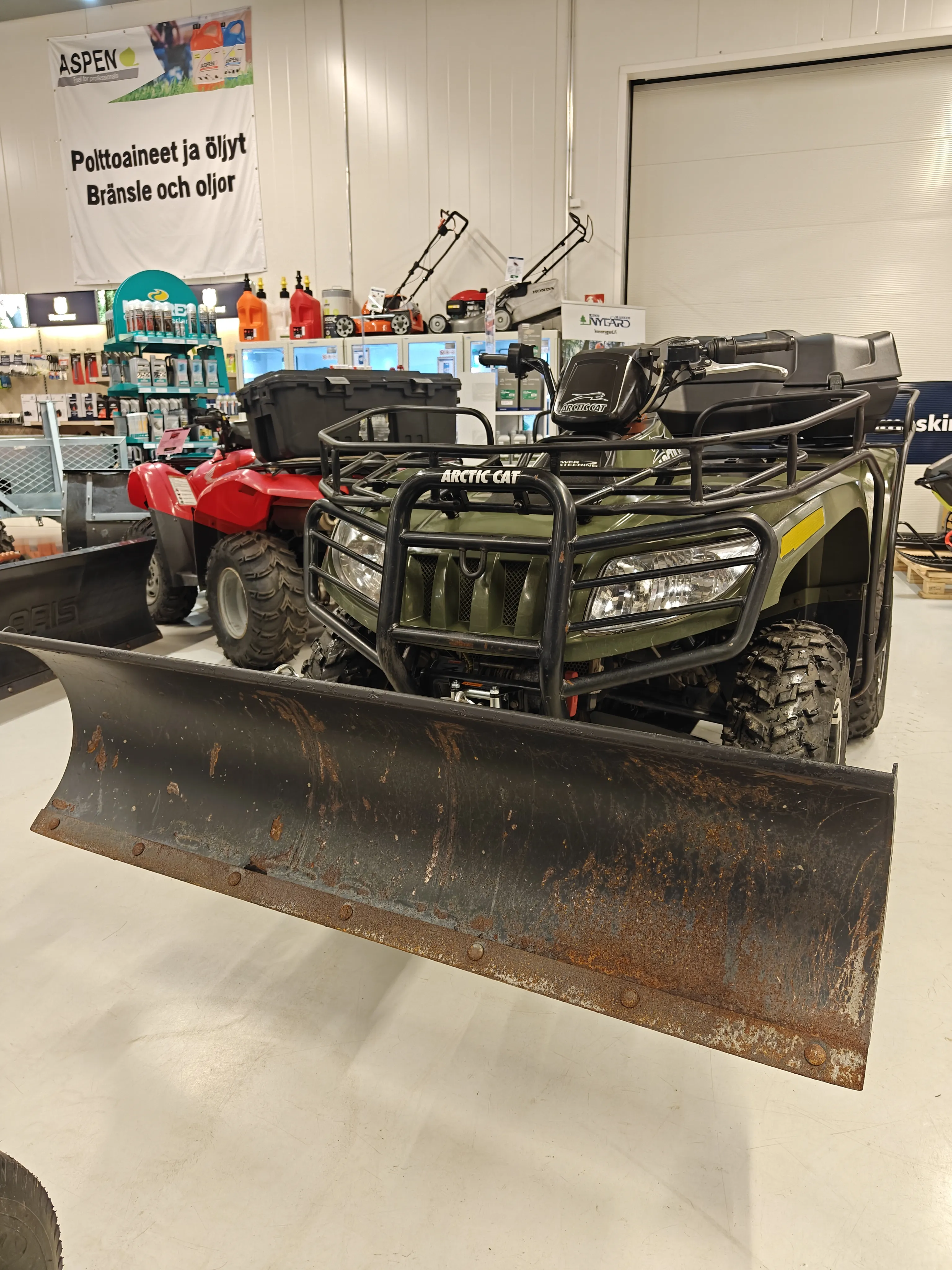 Arctic Cat mönkijä tehokkaalla 700cc koneella. Vuosimalli 2010. Mittarilukema 6300km/545 tuntia. Varustetuna lumilevyllä, vinssillä ja tavaralatikolla. Tämä on metsäkone eikä sallittu tieliikenteeseen. Myös vaihto ja rahoitus