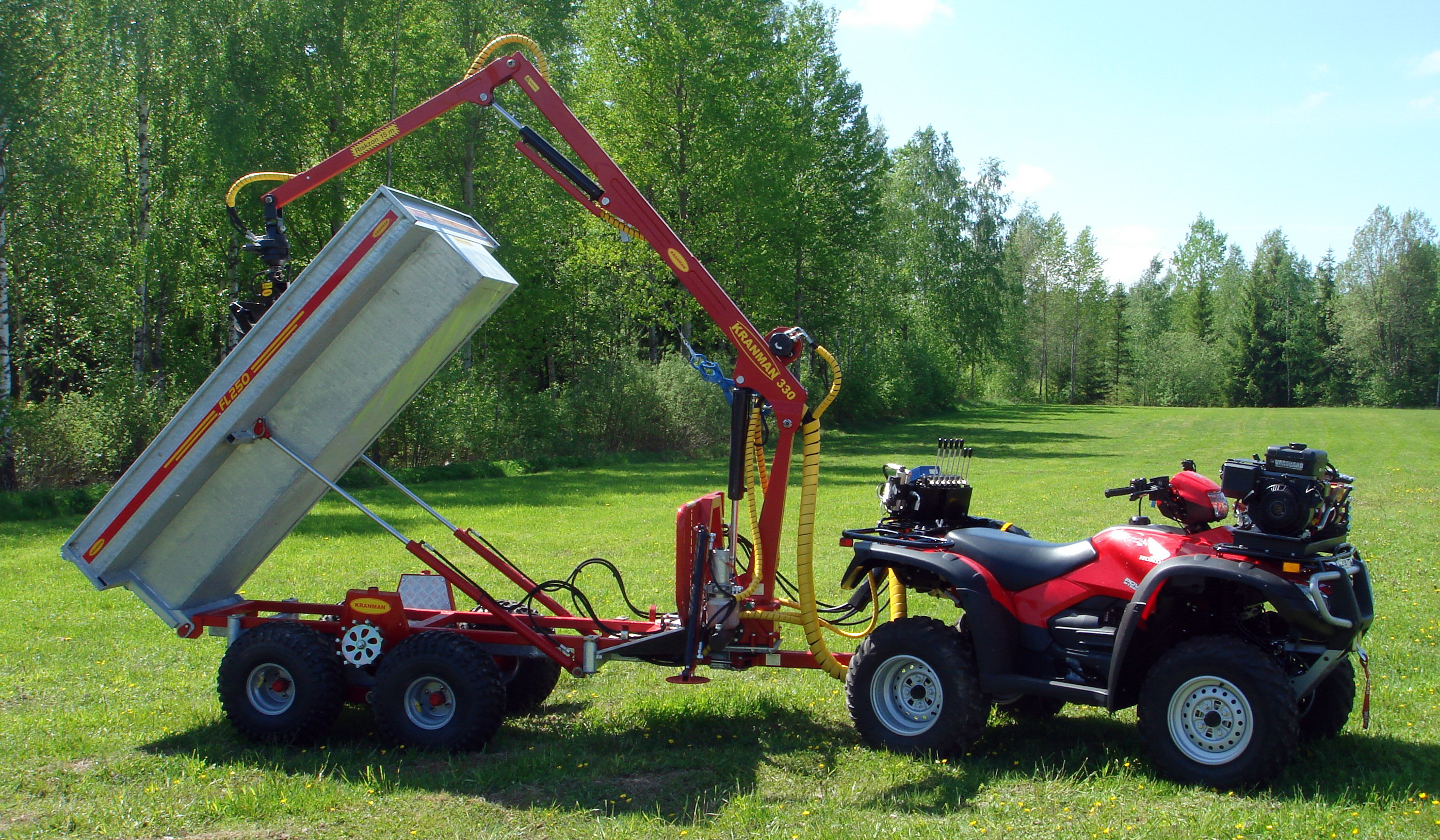 FL250 hydraulikippilava on monitoiminen lisälaite sinun koura kuormaajaan. Lava on asennettu tukevaan runkoon