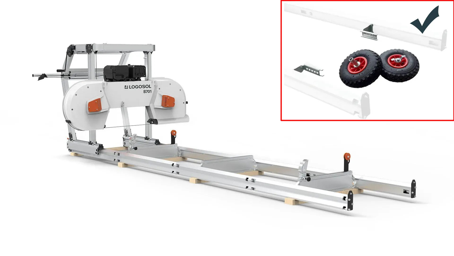 Tukin alusta on ratkaisevan tärkeä vannesahalaitoksessa. Monilla tämän hintaluokan sahalaitoksilla on vaikeuksia pitää se vakaana – erityisesti suuria tukkeja käsiteltäessä. B701-mallissa on vääntöä kestävä tukkialusta, joka pysyy vakaana myös puuta nostettaessa, käännettäessä tai käsiteltäessä erittäin suurta puutavaraa.